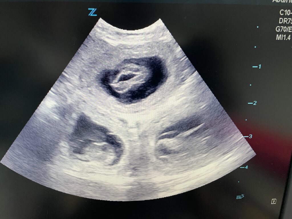 Der Ultraschall hat es bestätigt, Flocke ist trächtig. Unten ein Ausschnitt vom Ultraschall. Der Wurf soll nicht klein sein.