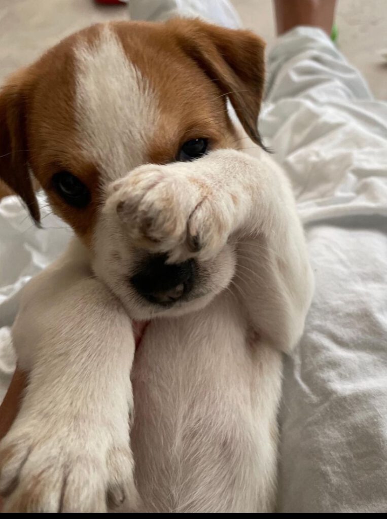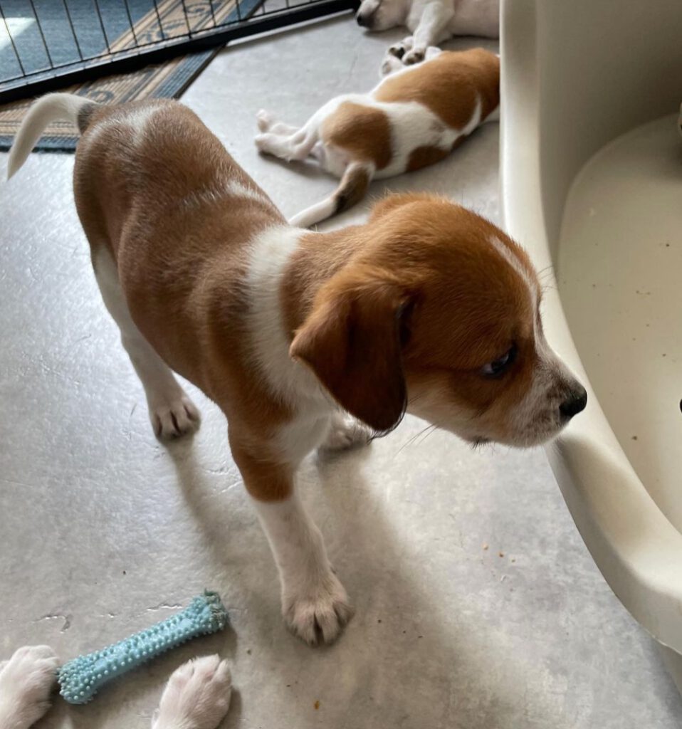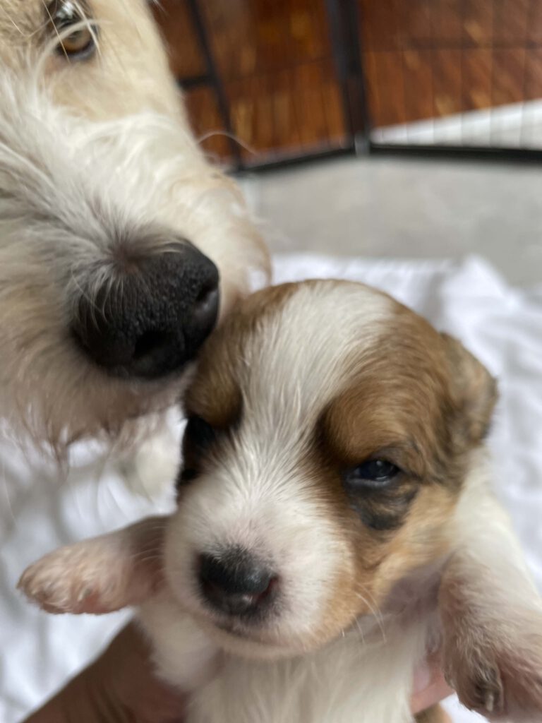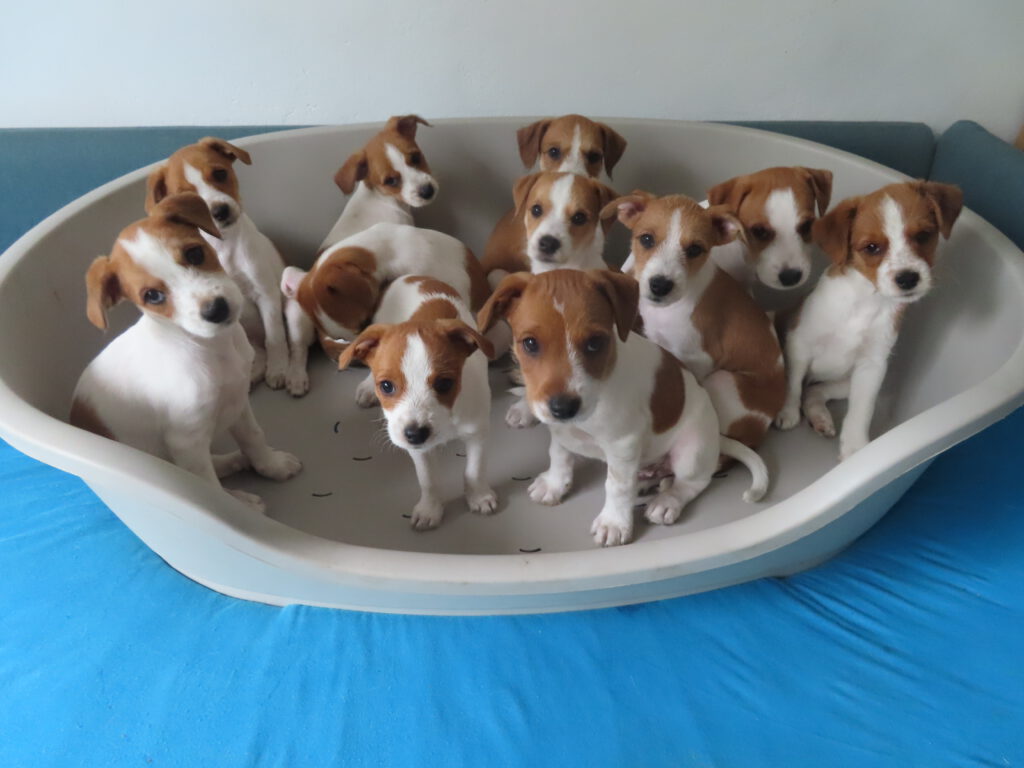 11 kleine Brausewinde – 5 Rüden und 6 Hündinnen sind am 8.7. 22 zur Welt gekommen, alle sind vital und fressen prima. Flocke kümmert sich sehr gut um sie und hat nun den ganzen Tag mit Welpenpflege zu tun. Wir übrigens auch.